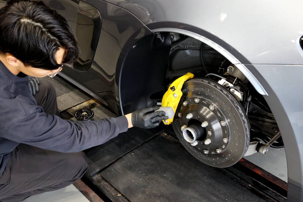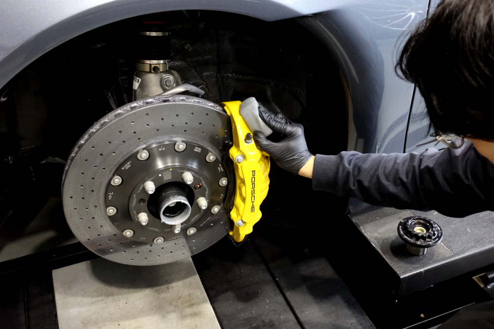 まずはブレーキキャリパー・ベルハウジングのコーティング施工を行いました。