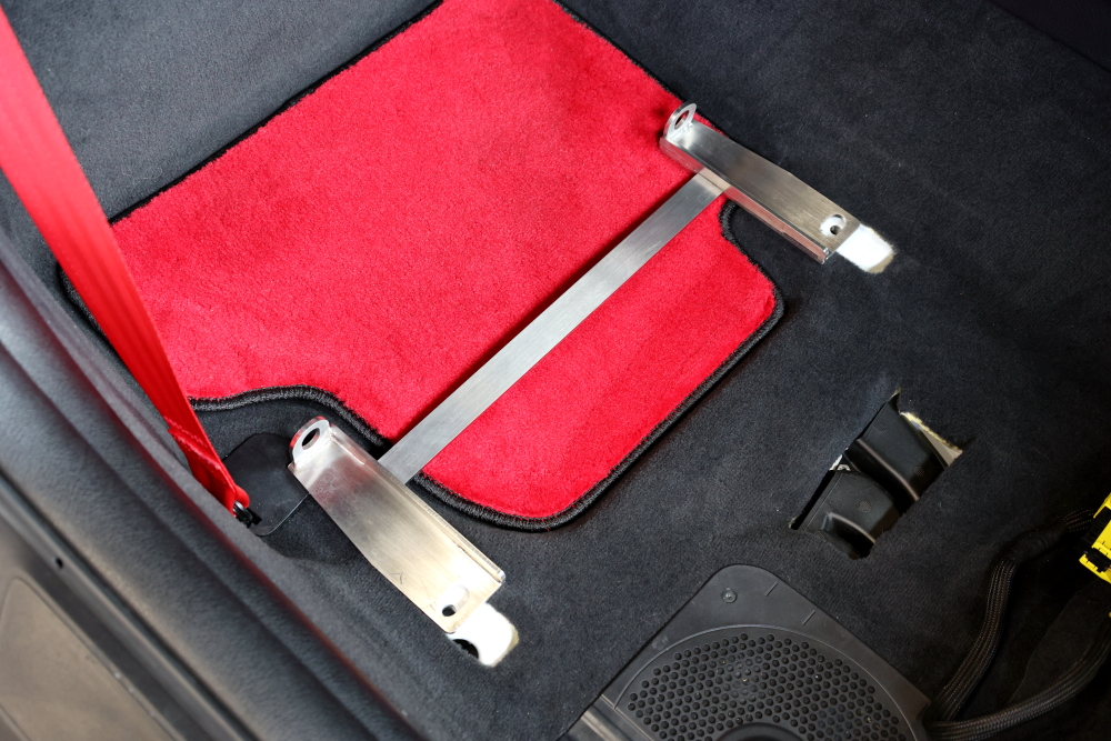 RECAROシートレールの間に挟み込んで締め付けを行います。
