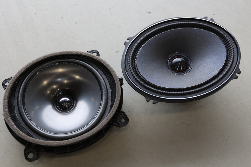 ちなみに純正スピーカーとALPINE製スピーカーを比べてみました。