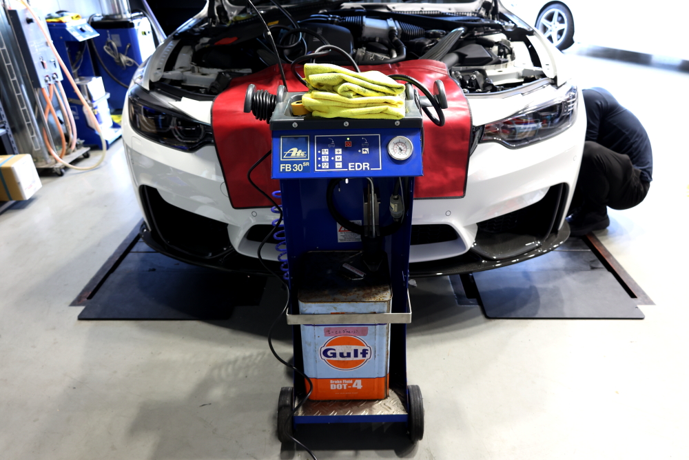 メッシュホースへ交換したので、ブレーキフルードの抜き替えを行います。