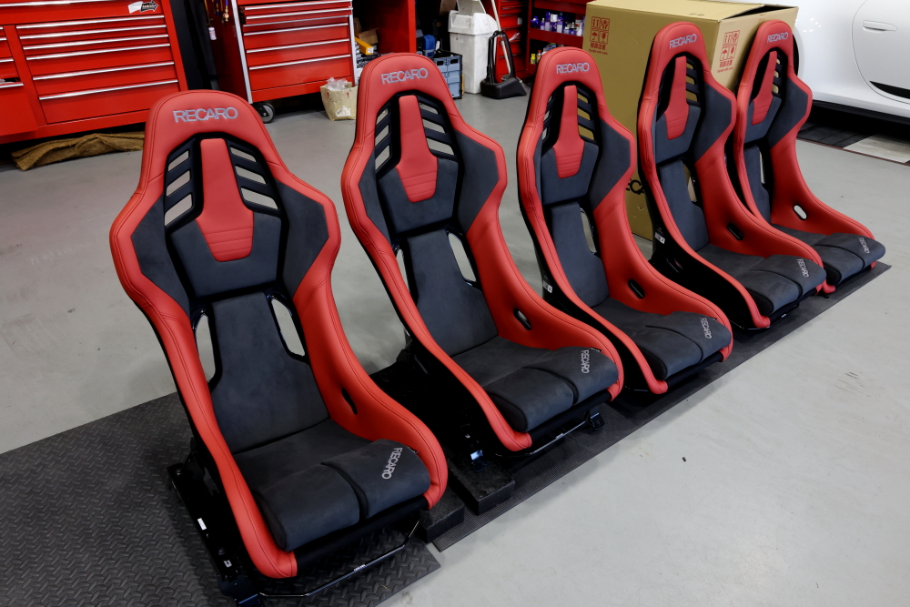 ガレージに並んだ5脚の特別なRECAROシート。