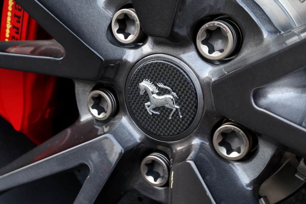 カーボンセンターキャップ 跳ね馬のエンブレムが鎮座するセンターキャップにはカーボン素材をセレクト。