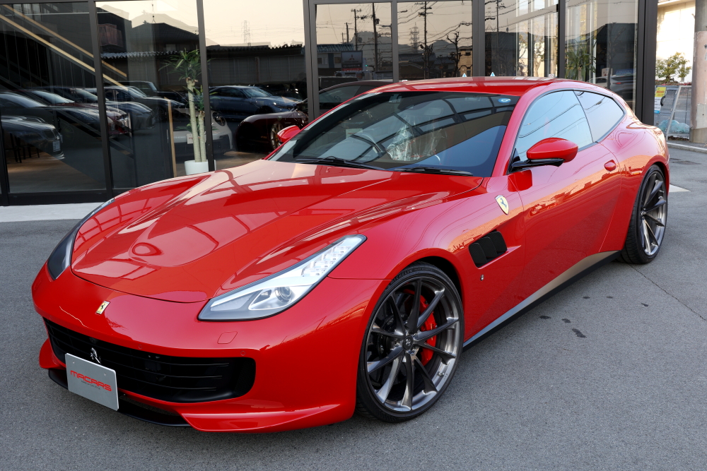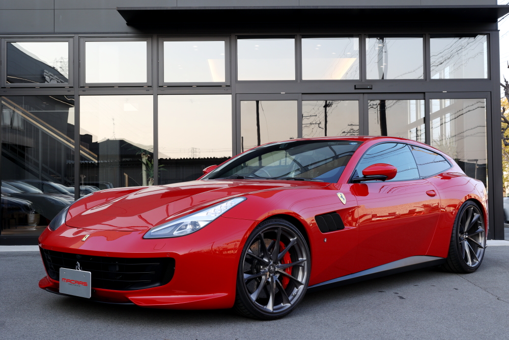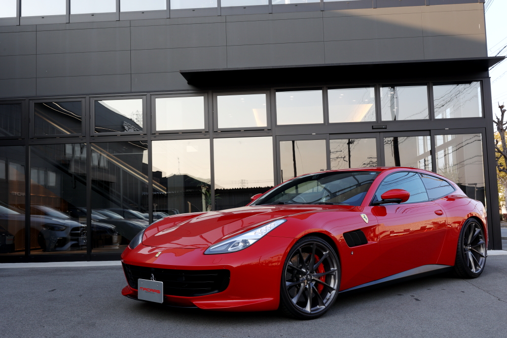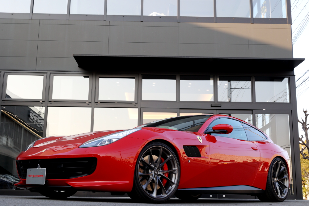 全ての作業が完了したGTC4ルッソ。 ロッソコルサのボディに、ダークトーンのHRE鍛造ホイール、そしてさりげなく主張するチタンボルトの質感。
