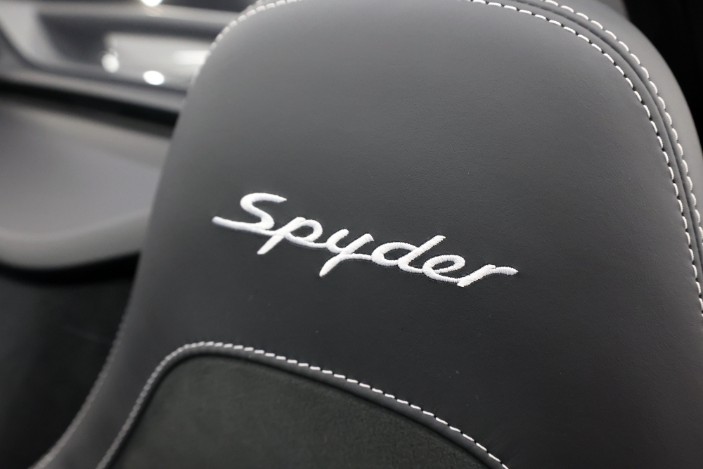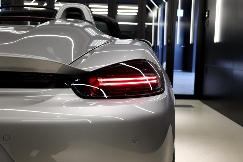 ショールームのライティングに美しく輝く、流麗なスタイリングの718スパイダー。
