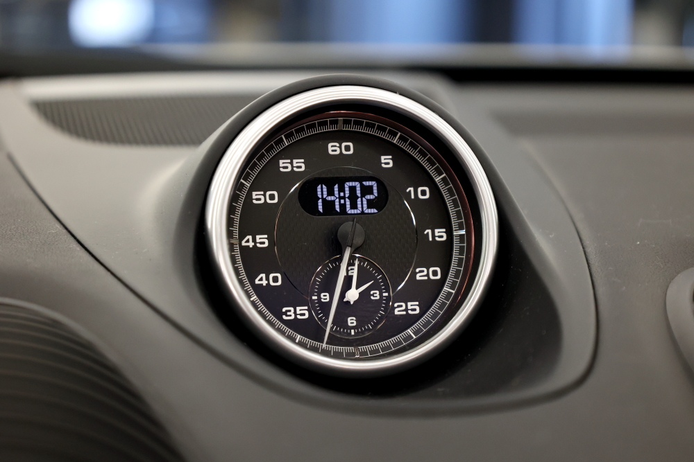 ダッシュボードに鎮座するスポーツクロノグラフ ドライバーの視線を奪うクロノパッケージ。コックピットに乗り込むだけでアドレナリンが湧き上がります。