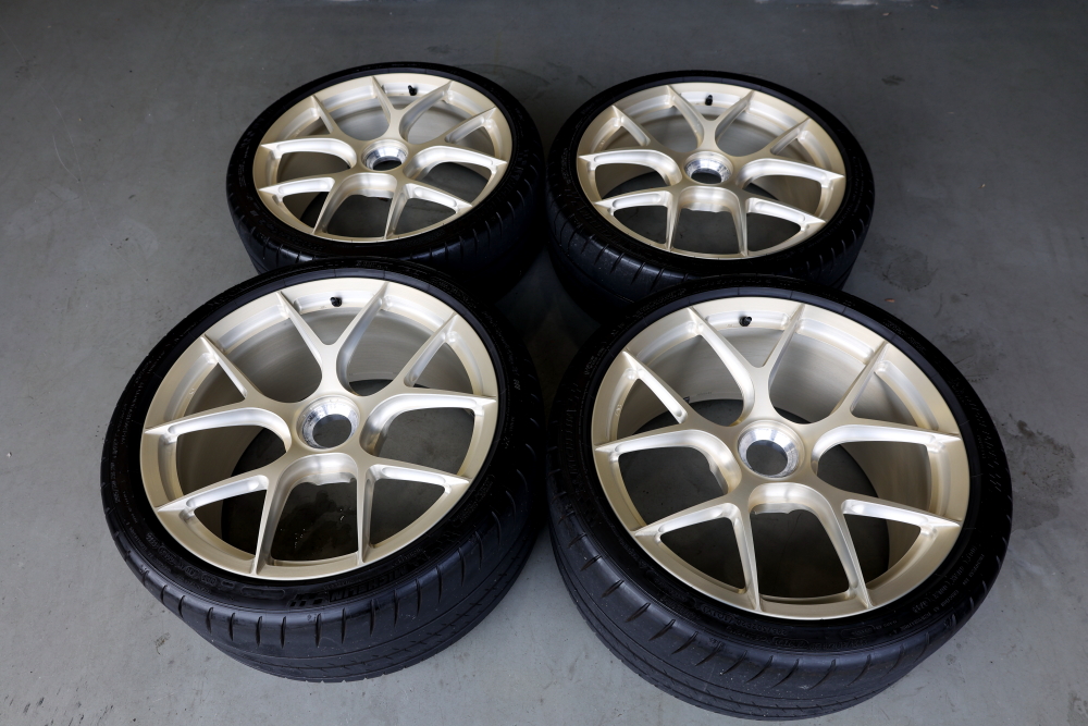 装着完了後の姿がこちら。 サテン系のボディカラーに、サテンゴールドのBC FORGEDホイール、そしてその奥に鎮座するRddローター。