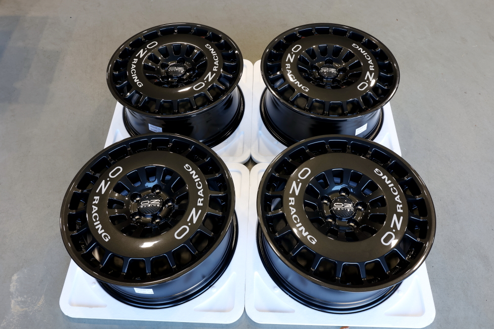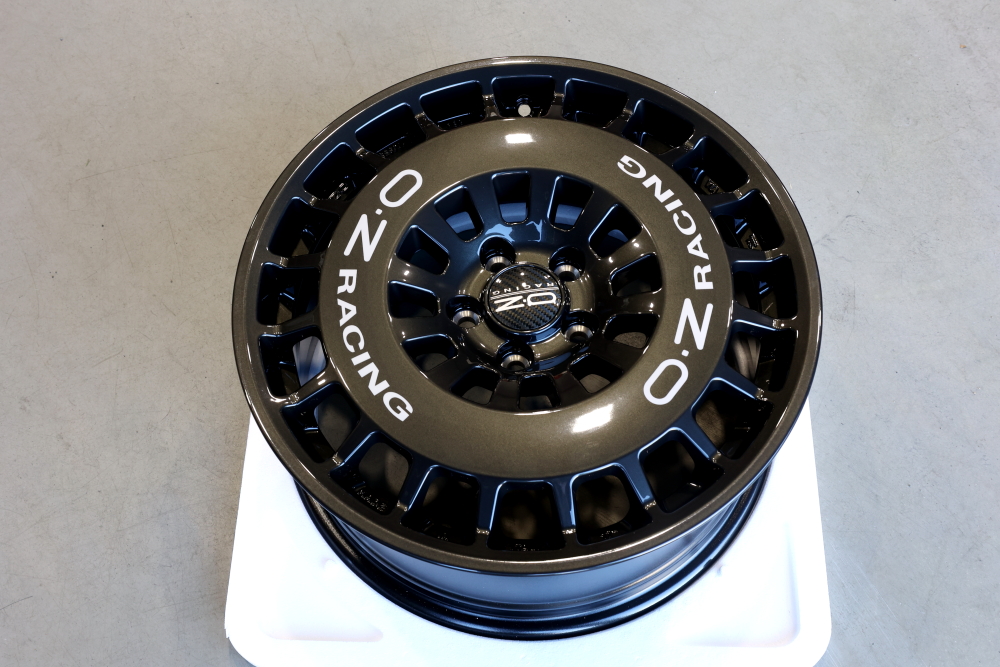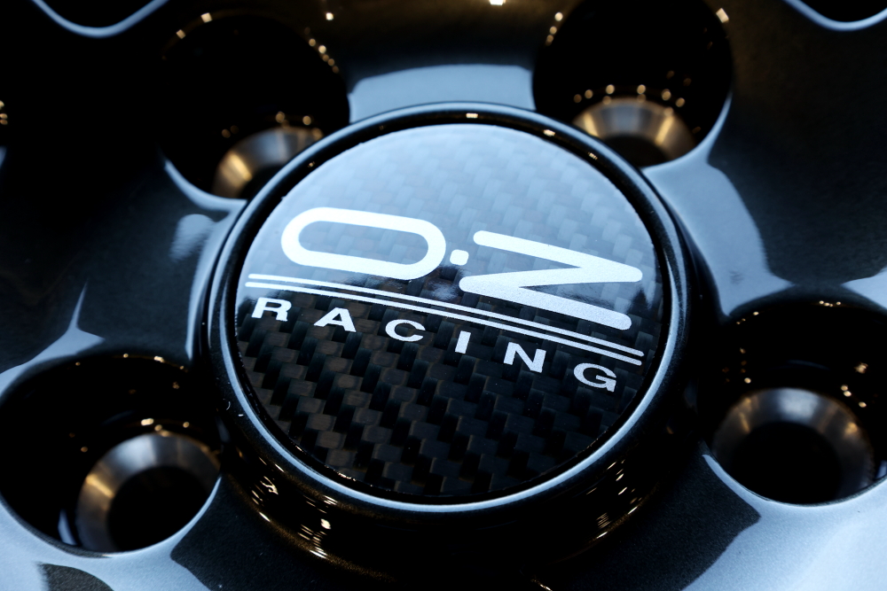グロスブラックの本体に、大胆に刻印されたホワイトの「O-Z RACING」ロゴが圧倒的な存在感を放ちます。
