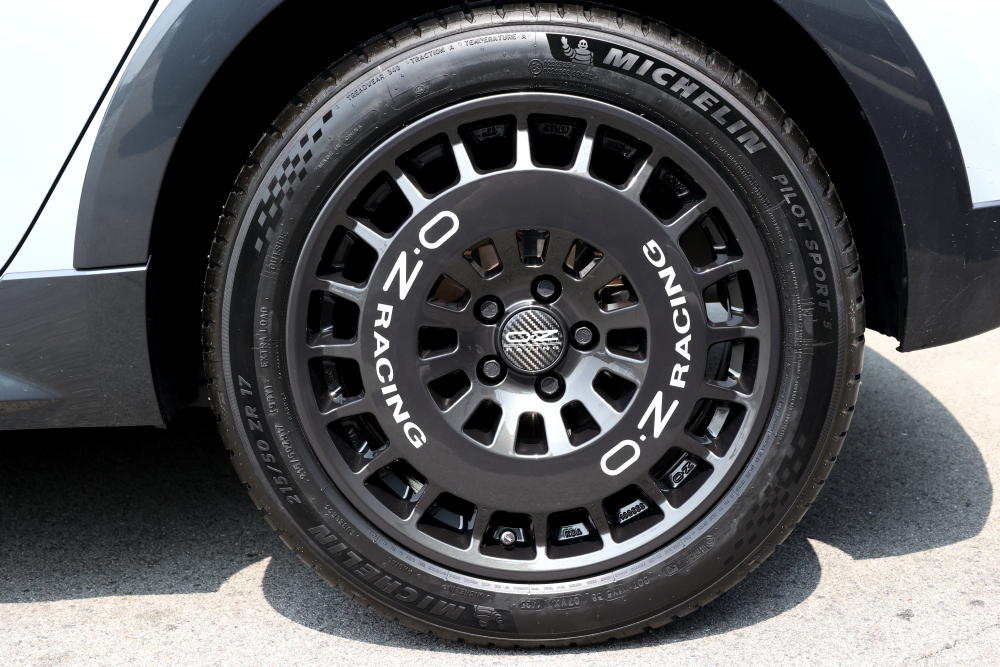 純正の足回りから、OZの新作へと履き替えることで、サイドビューの印象は一変しました。