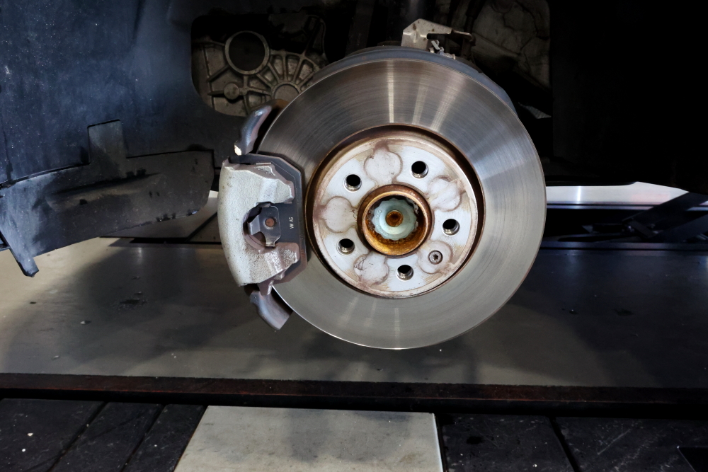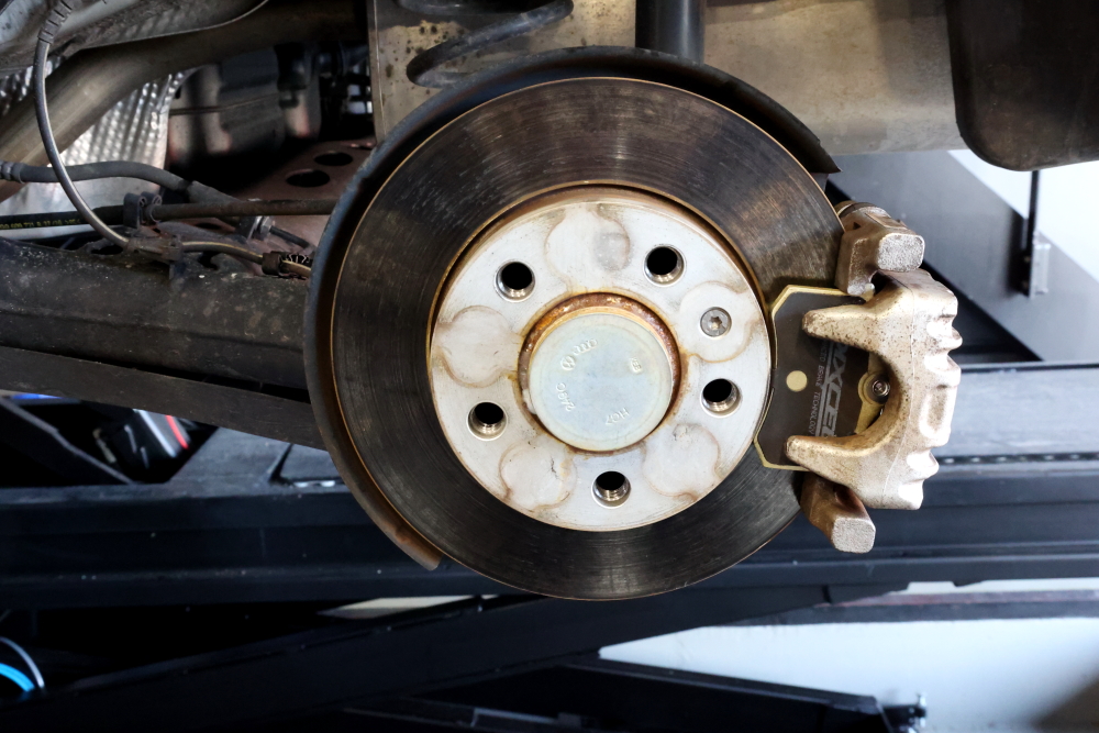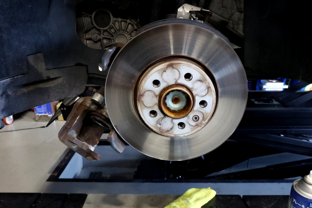 純正ホイールを外して交換作業に入ります。
